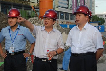罗俊国陪同中铁十九局集团有限公司董事长、党委书记葛永利(右)视察宁波项目部