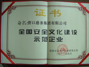 [安全文化]营口港务集团获得全国首批“安全文化建设示范企业”荣誉称号