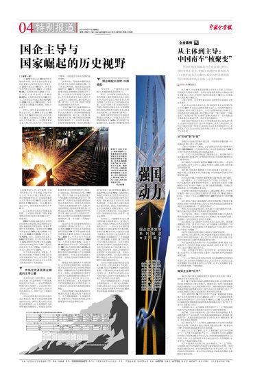 在本报独立策划的大型“强国动力”系列报道中,《走中国特色国企发展道路》、《国有化力量》、《世界百强梦想》、《保持国企先进性》等重磅文章引发了各界高度关注。在此,本版从上述文章中节选部分观点和论述形成《强国之基》、《舆论之惑》两篇文章,以飨读者。