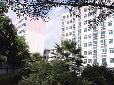 绿色掩映的职工宿舍大楼