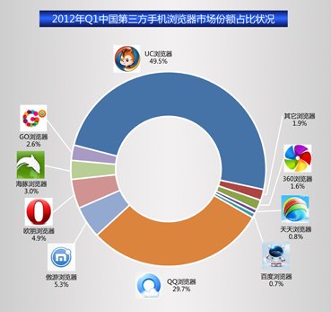 除了不相上下的手机QQ浏览器,极力抢夺这个手机上网第一入口的还有移联、海豚等后起之秀,更有华为、网秦等即将登场的新兴势力。易观国际分析师刘鹏认为,UC一家独大的局面正在变得越来越难以维持。