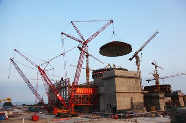 广西防城港核电站一期1号机组穹顶近期吊装成功,这标志着该机组建设全面由土建阶段进入安装调试阶段。防城港核电站由中国广东核电集团有限公司与广西投资集团有限公司共同出资建设,是中国西部少数民族地区首座核电站,预计首台机组将于2015年初投入商业运行。CNS供图