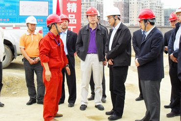 电建一公司总经理孙洪力(右三)陪同贵州电网公司党组书记、总经理杨晋柏在施工现场检查工作