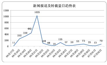 6月18日起,网络媒体如龙虎网、和讯网等率先对此事进行了报道;6月19日,传统纸媒如《证券时报》、《21世纪经济报道》、《羊城晚报》等亦开始跟进,共计获得500多篇次的转载量,舆情也由此得到全面扩散,热度持续攀升。