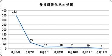 娃哈哈接连曝出质量丑闻,引发了媒体及公众的关注与讨论:监测显示,从数据总量来看,自8月6日至12日一周的时间内,在新闻报道方面,相关原发加转载量高达696篇;而在微博信息方面,新浪、腾讯、网易、搜狐四大热门微博站点亦共计有近千条。但从数据走势来看,舆论聚焦的持续度并不高,相关话题在短短两天后即迅速冷却,体现出因当前食品安全问题频发且屡禁不止而导致舆论逐渐对同类事件产生“麻木”的现象。