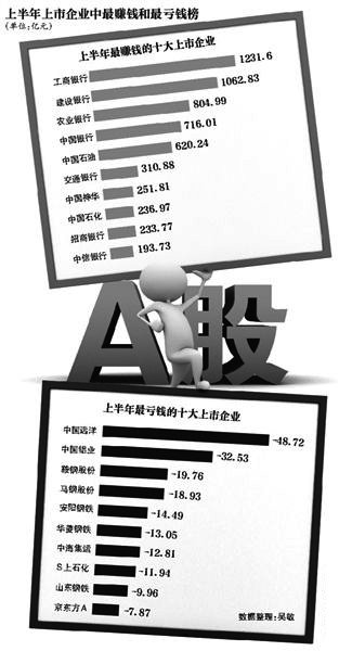 事件:据沪深两市上市公司中报披露,2455家上市公司共录得净利润1.02万亿元。其中,16家上市银行净利润5452.29亿元,占比高达53.57%。同时,钢铁企业亏损程度也在加剧,安阳钢铁和华菱钢铁公布中报显示,安阳钢铁净利润为-14.49亿元,同比下降2126.30%;华菱钢铁净利润为-13.05亿元,同比减少497.28%。有报道称,在整个A股市场上,位列亏损前10位的上市公司中钢企数量达到5家。