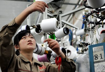 11月5日,义乌浪莎控股集团织造车间入党积极分子董瑜婷,一丝不苟为企业赶制出口订单。浙江省义乌市有9900多家非公企业,现已有6500多家建立了党组织,并普遍在企业生产班(组)、车间设立党员示范岗,划定党员责任区。CNS供图