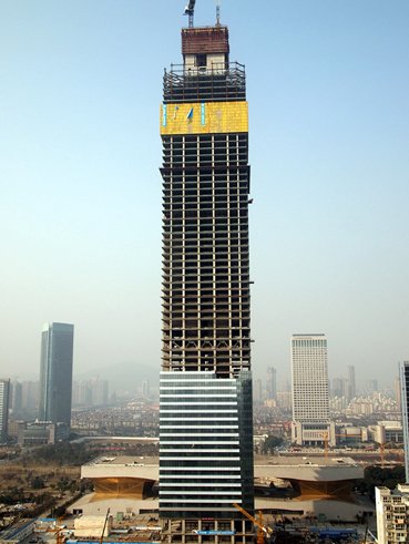 2012年11月29日,随着最后一根钢柱缓缓升吊并成功安装到位,“无锡第一高楼”———无锡国金中心工程主楼核心筒钢柱提前165天封顶。从第一根钢柱起吊到主楼钢结构封顶,钢构人用261天保质保量地完成了近1.9万吨钢结构安装,创造了两天一层的新“无锡速度”。