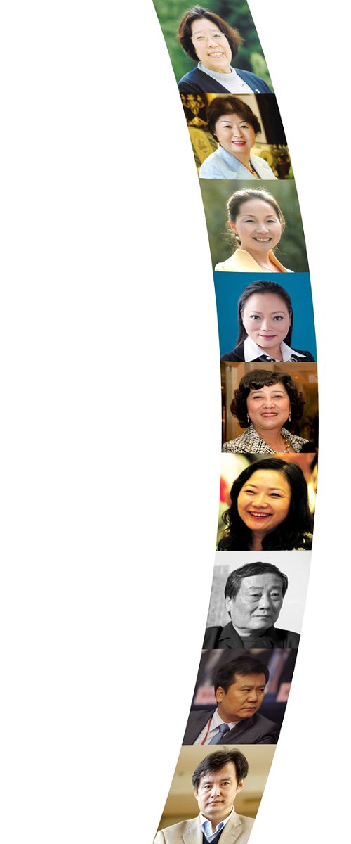 由上至下:杨绵绵、张茵、陆琴、严琦、何永智、吴亚军、宗庆后、张近东、黄鸣