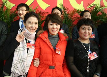 在大连两会上,新当选的大连市人大代表、大连家园建设集团有限公司董事长刘进(中),大连华旭置业有限公司总经理张连欣(右),大连话剧团副团长夏君(左)格外光彩照人,她们成为两会最靓丽的姐妹花。她们不仅外表亮丽,谈吐优雅、处事谨慎,为人低调,而且她们在事业上做得非常成功,成为行业的新领军人物,受到上级领导的认可和广大市民的爱戴。