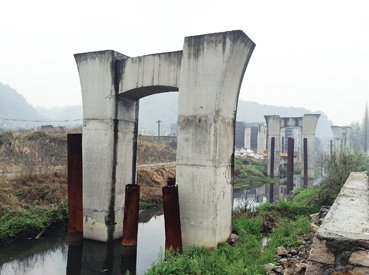 通过经济园的高架桥只有数个桥墩矗立在那里,不少的裸露在外面的钢筋锈迹斑斑。作为经济园配套设施,高架桥本该在2009年10月份通车,但3年多过去了,仍然未能建成。本报记者张龙/摄