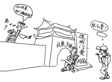 4月10日,湖南凤凰县开始实施“一票制”,不论是否参观古城内的景点,都将收取148元/人的门票费。不论凤凰古镇门票新规是为了增加收入,还是为了规范旅游秩序,都不能把游客和当地商户当成“待宰的羔羊”。王利博制图
