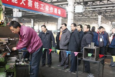 公司每两年组织一次职工技能大赛,总经理吴旭东等公司领导视察铣工比赛。付福虎/摄