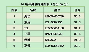 最终,海信55寸VIDAATV以9项测试指标第一的成绩夺得总冠军,索尼、TCL分列第二、三位。