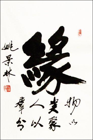 姚景林深入研习书法,根据中国文字的象形特点,在传统书画艺术上有所创新和突破,他将文字的“义”和“形”结合起来,同时赋予作品深厚的文化内涵,让传统艺术与现在时尚相结合,让自己的书法艺术更具时代气息。姚景林说,只有不断创新,艺术才具有不可估量的价值和延绵不息的生命力。