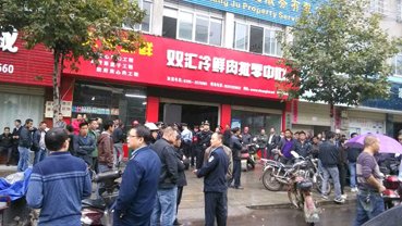 2013年9月28日,江西省德安县发生围堵双汇专卖店事件,图为事发现场。