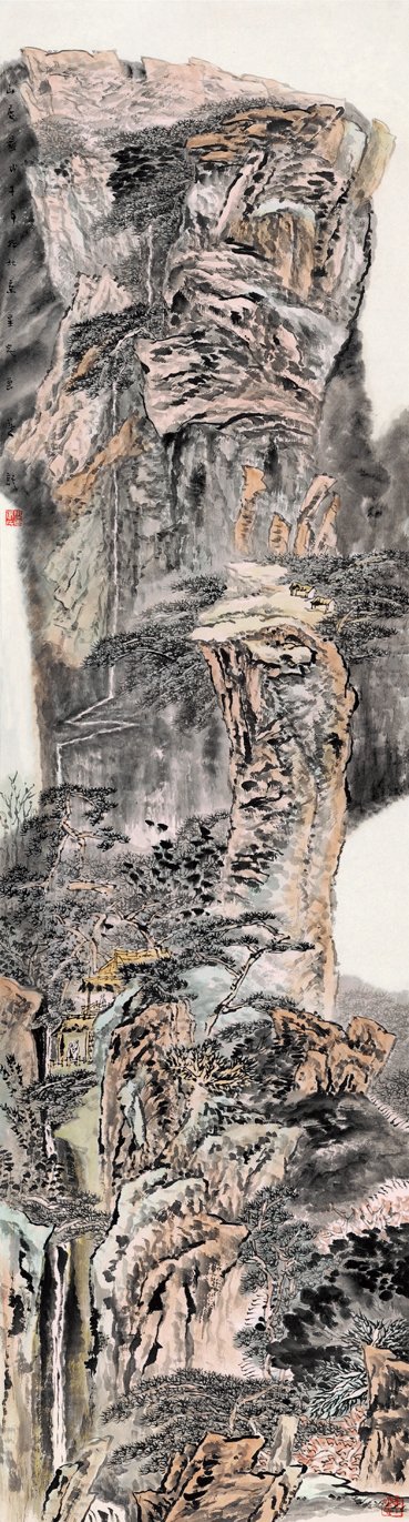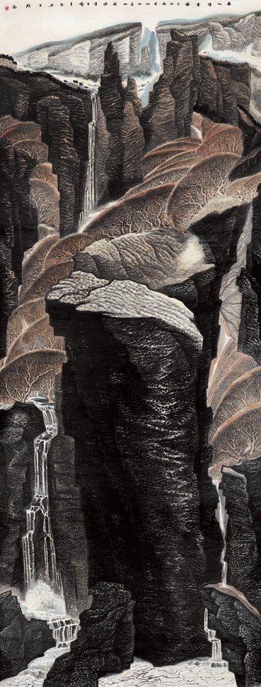他的作品,山川自然景观为主要描写对象的中国画,所表现出来的情调和境界。集南北之长,可谓见了世面别具一格,既有南派烟云之隽而不时透露北方之野逸,灵透中不失雄霸。他的勤奋令人一惊,最近又有新作要出一本画集。他的画作雄健苍润,淡墨层层积染,锉其钢锋。