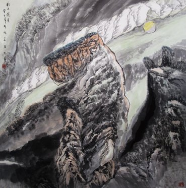 张星忠为人敦厚,重承若,谈及创作,与艺术的现象,也往往不按正常出牌。我们的出牌方式很多,叫乱侃目前国内的山水画派,依然南北方按地理人示,各自表述。张星忠的作品主要以崇尚崇高大美,呼唤民族大灵魂为核心,以开创新风貌的具有深厚民族文化底蕴与鲜明民族精神的中国画为具体实践。他的画作使传统绘画从侧重客观物象的描摹转向注重主观精神的表现,以情构境、托物言志的创作倾向给了自己一个创作方向的定位。张星忠从山东进京后,似乎要自己找一条道路,前一段走密,后一段又粗密相间,很耐品味,很像山东人粗壮之中不失儒雅,以自己的艺术实践去证明自己所观察,提炼,汇合后去完善自己的美学思想。但在艺术论中,却更明确了一种创新精神,山有灵,人有性,碰撞之后,就算是悟了。每次欣赏张星忠的画作,便是一次震撼心灵的视觉盛宴的享受。就像是他的《彩云追月》,这幅作品通过对云气浮动、明月悬浮的写意描绘,表达出了对大自然的热爱和要将其拥入怀抱的美意。不仅美轮美奂,而且寓意美好,他从现代意识的外象到内象,他把对山水的情感,写与笔端。他的作品不是复古,而是都有时代感,富有新意与创意。它超越了古典山水的技巧、程式,表现着当代都市人阳光心态下的山水形象。