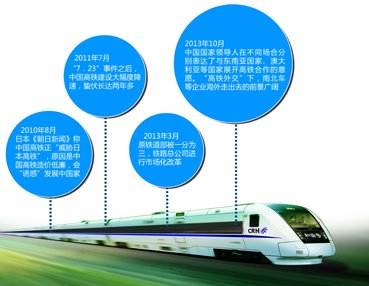 此前,我国新一届政府高层在出访东南亚期间曾屡次提及加强高铁方面的合作,并频频向外国领导人推销中国高铁。这是继中俄“贷款换石油”、中蒙“以工程换资源”之后,中国政府推行的“高铁外交”新模式,即将掀起新一轮高铁跨国营销的热潮。