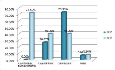 对国有银行改革,40.00%民营有要求,国企高达73.33%。