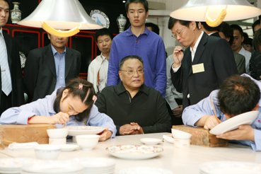 中国残疾人联合会名誉主席邓朴方与广彩制作残疾人在一起