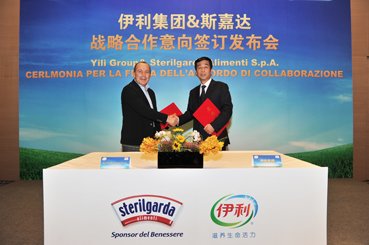 斯嘉达CEOFernandoSarzi与伊利集团执行总裁张剑秋(右)握手