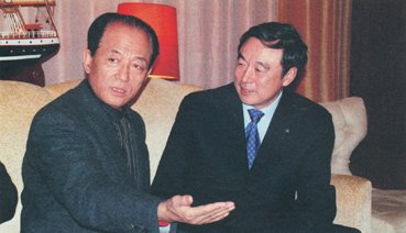 张文台与著名企业家、全国人大代表、招商银行时任行长马蔚华(右)交流如何提高自身素质问题。