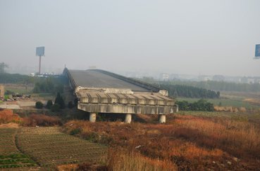 沈海高速从慈溪市庵东镇与崇寿镇交界处穿行而过。在庵东镇海南村与崇寿镇崇胜村之间,有一座横跨沈海高速的大桥。奇怪的是,在横跨高速之后没多远,桥面就戛然而止了,悬在半空中。