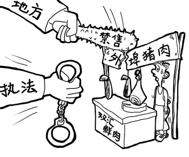 实际上,早在2007年,湖北省政府就曾下发了鄂政发[2007]67号文件,其中第四条第一款明确规定:凡符合食品卫生标准,具有动物产品检疫合格证、出境检疫合格证、运输工具消毒证明的猪肉产品,可以在全省范围内流通,各地不得以任何理由限制、禁止合格猪肉产品在本辖区销售。记者在咸宁暗访期间,曾就文中上述情况与当地动检部门工作人员核实,但受访者均以不知道、不清楚等为由没有接受记者采访。