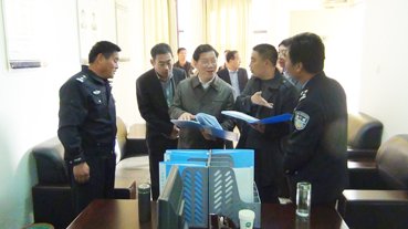 江苏省国土资源厅执法监察局局长袁晓军,县委常委、常务副县长单长丰等领导,检查指导丰县国土资源警务室建设。