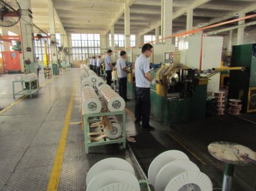 天津金桥焊材工人们在生产线上紧张而有序地忙碌着