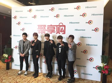 5月8日,韩国underdog组合参加海信电视“聚享购”智能电视购物平台启动仪式