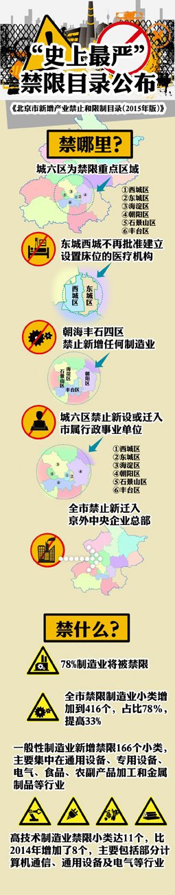 “史上最严”禁限目录公布《北京市新增产业禁止和限制目录(2015年版)》