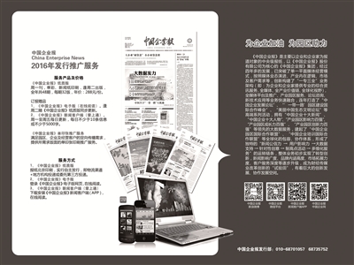 版权声明:《中国企业报》刊发的所有作品,版权均属于中国企业报社。未经报社书面授权,任何单位及个人不得将《中国企业报》刊发的内容用于商业用途。如进行转载、摘编,必须在报社书面授权范围内使用,并注明作品来源"中国企业报"以及相关作者信息。 本站地址:北京海淀区紫竹院南路17号 邮编:100048 电话:010-68701050 传真:010-68701050 京ICP备11013643号 京公网安备110108008256号