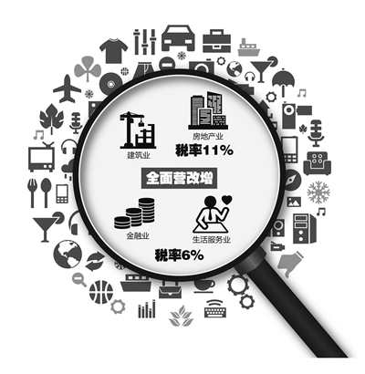 | 2016年5月1日起,将营改增试点范围扩大到建筑业、房地产业、金融业、生活服务业。 王利博制图 |