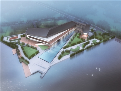 从空中俯瞰该项目效果图,整栋建筑31根廊柱显得庄严和素雅。31根廊柱均为20米高,内径60厘米,为空腔薄壁清水砼结构,其中清水砼廊柱此类结构是国内首次设计推广使用。为实现这一设计,孙志凌带来团队专门研发了空腔薄壁自密实清水混凝土,浇灌混凝土时让其自动往下流,最终清水效果得到各方认可。
