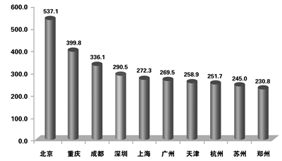 | 2013年全国主要城市汽车保有量前十排名情况(单位:万辆) |