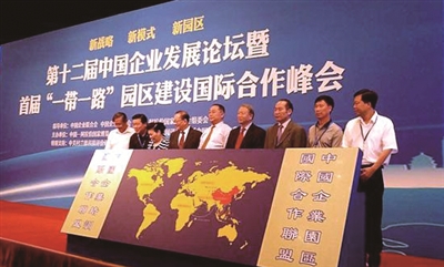 2015年7月12日,来自全国各地产业园区负责人、企业界精英、国家相关部门领导、专家学者、海外园区中国运营商及驻华使节齐聚北京钓鱼台国宾馆芳华苑,共同开启由中国-阿拉伯国家博览会组委会、中国企业联合会等单位指导,中阿博览会秘书处、中国企业十大新闻评委会、《中国企业报》集团共同主办的第十二届中国企业发展论坛暨首届“一带一路”园区建设国际合作峰会。峰会上的最大亮点之一就是组建成立“中国企业园区国际合作联盟”。