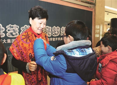 | 全国人大代表、合肥百大集团董事长郑晓燕在百大集团艺术乡村少儿摄影公益学校开学典礼上 |