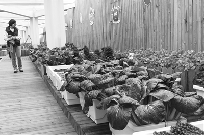 | 上海浦东新区一家商场在屋顶阳光房内开辟了大片屋顶室内菜园,供市民认领种植。这片菜园取名屋顶小镇。 |