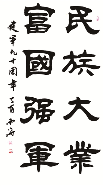 今年正值中国人民解放军建军90周年,为了表达对部队培养教育的感激之情,杨开金以书法的形式,再书老兵情怀,不忘初心,继续前进。