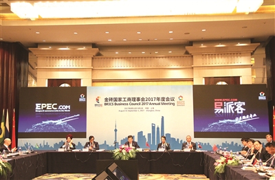 8月31日,在金砖国家工商理事会2017年度会议上,五个理事国代表审议通过并共同签署了金砖国家工商理事会2017年度工作报告。易派客被列为金砖国家2017年八项核心成果之一。在会上,易派客做出了“倾力打造金砖服务专区,助力提升金砖贸易”的承诺。
