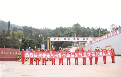 中国石化中原油田普光气田作为川气东送的气源地,采气厂301集气站是普光气田产量最大的集气站,自2009年10月投产以来,实现了安全平稳生产、高效科学管理,截至11月4日凌晨,累计生产原料气100.0118亿方,成为普光气田首个单站突破100亿方的集气站。