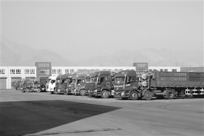 | 运煤大车停靠在园区周边“晒太阳” 本报记者 江金骐/摄 |