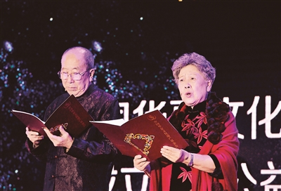 | 老艺术家陶玉玲、雷恪生在基金会10周年活动现场朗诵 |