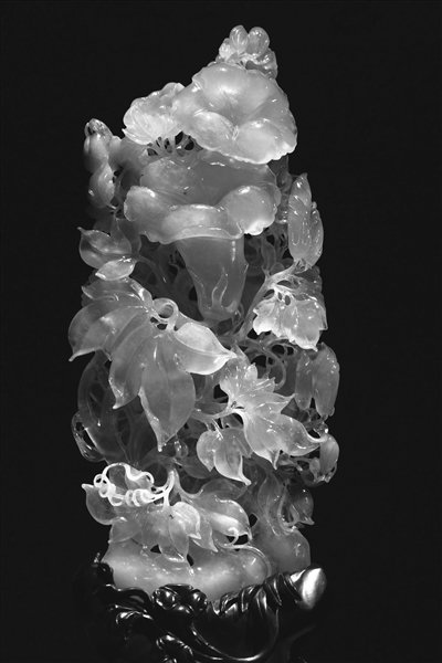 玉雕、石雕作品大多是近年来创作的工艺精品,其中不乏在国内专业评比中获得金奖,从材料上看,既有细腻温润的和田白玉、亮丽剔透的翡翠,还有天津特有的叠层石雕。从风格上讲,津派玉雕吸收了国内不同流派的精华,在创作和制作上更是发挥和展现了不同的质之美,琢之精,很多作品令人叹为观止,彰显出中华源远流长的玉文化。石雕展品,雕刻精美,风格各异,题材清新丰富,或抒发自然情怀或刻画富有生命之灵动动物,实乃美不胜收。它们以各具特色的艺术形式和丰厚深邃的文化内涵,展示着华夏民族的历史和文化。