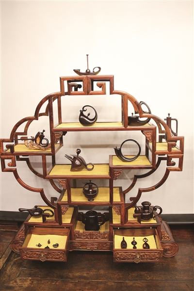 | 作者:魏宝全 作品名称:《百壶争艳》(紫檀) |