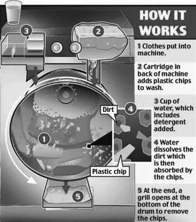 无水?怎么洗衣服?听起来这个产品就很厉害的样子,事实上如何呢?英国利兹大学研究人员已发明一种新型洗衣机,它只需不到2%的水和电。这种叫Xeros的洗衣机实际上可以清除所有类型的污渍。由它清洗的衣服已基本干燥,所以减少了对烘干机的使用。Xeros洗衣机每次运作只需一杯水就能完成任务。