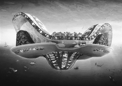 建筑师文森特·卡尔伯特把这项发明叫做Lilypad,但它还有个更有名的名字,那就是“漂浮的气候难民生态人工岛”,因为科学家预测海平面将上升20—90厘米。这座漂浮的城市将于2100年变成现实,到时候将有5万名富人在上面安家落户。