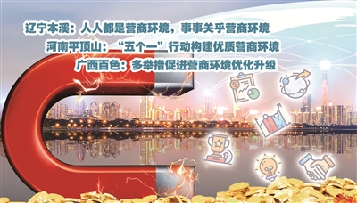 营商环境是一个地区市场环境、政务环境、法治环境、社会环境等方面的综合体现。能否持续优化营商环境,是一个地区吸引要素集聚的关键,最终影响地区发展的进程。全国各地都掀起了改善营商环境的行动热潮。其中,辽宁本溪、河南平顶山、广西百色等地的营商环境为我们树立了典范。
